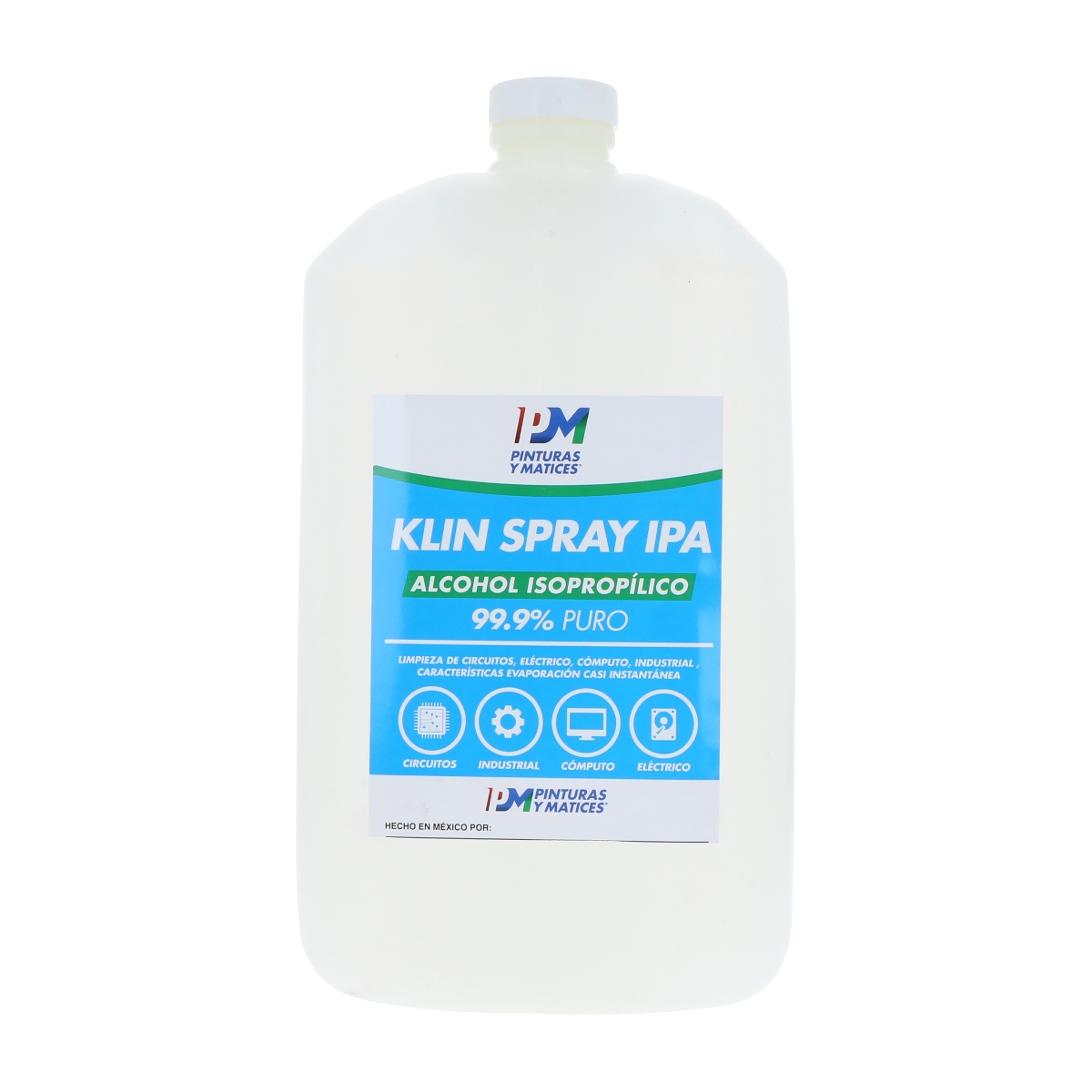 En QUÍMICA PURA somos fabricantes y distribuidores directos con base en Guadalajara. Garantizamos productos de calidad profesional y atención personalizada. ¡Confía en los expertos! ESPECIFICACIONES DEL PRODUCTO • Contenido neto: 1 Galon de 4 Litros • Concentración: 99.9% de pureza (no rebajado) • Tipo: Alcohol Isopropílico grado técnico • Estado: Líquido incoloro de evaporación rápida • Marca: Química Pura USOS PRINCIPALES • Limpieza de circuitos y tarjetas electrónicas • Mantenimiento de controles, sintonizadores y mecanismos • Limpieza de piezas plásticas, metálicas y brochas de maquillaje • Eliminación de grasa, humedad y suciedad • Desinfección de superficies (madera, metal, plástico) sin dañarlas • Uso en laboratorios, talleres, hospitales y hogar • Combate eficaz contra plagas como chinches.